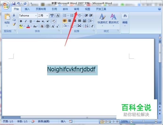 我们先选中该英文,再点击菜单栏【审阅】选项卡