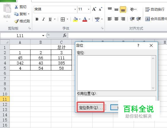 弹出的界面,我们点击定位条件;