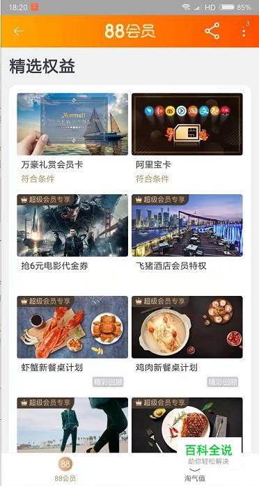 淘宝的淘气值大于400时就是88会员了,我们可以在会员权益里兑换会员卡,电影代金券等等。