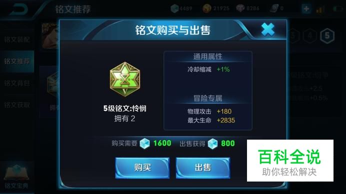 然后,绿色的铭文我们搭配的是怜悯,可以增加她的冷却收缩,物理攻击和最大生命。