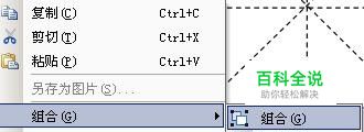 所有画图的工作完成后,点一下“绘图”工具栏上的“选择对象”按钮,一次选中所有对象,在对象上点击鼠标右键,并在弹出的菜单上选择组合→组合。