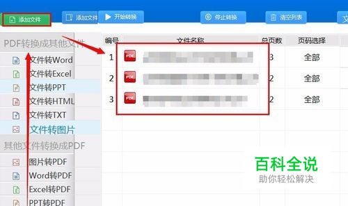 点击“添加文件”或者“添加文件夹”,把准备好的PDF文件全部添加进去(可批量添加);