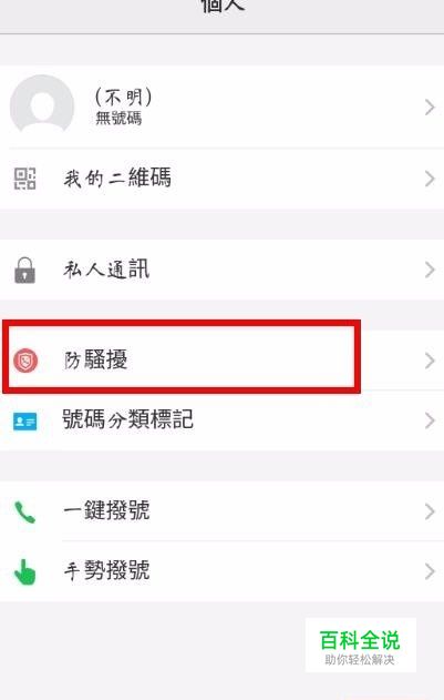 第二,在出现的界面的底部点击个人,在个人界面中找到红色方框所在的防骚扰