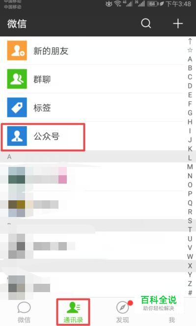 首先,我们打开我们的微信,然后我们点击通讯录,之后点击公众号;