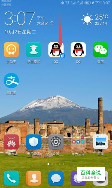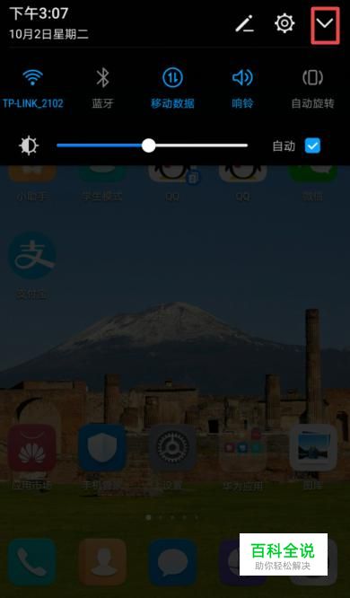 首先,我们打开我们的手机,然后我们在手机桌面的上方下滑一下,如图所示;