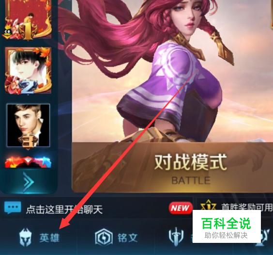 进入之后,点击英雄,进入下一页面,如图所示。