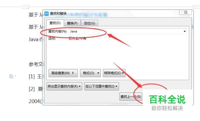 查找内容 在查找内容中输入【关键字】,比如Java,然后点击【查找下一处】,如下图所示: