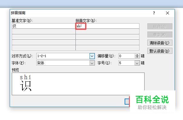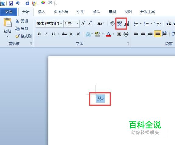 之后我们选中识,然后我们点击拼音按钮;