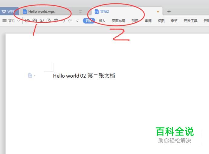 新建两张文档 首先新建2章wps文档,分别在这两张文档写上内容,如下图所示: