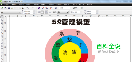 今天这节让我们利用前面所学过的知识来看看使用cdr软件怎样绘制制作一个5S管理模型吧~
