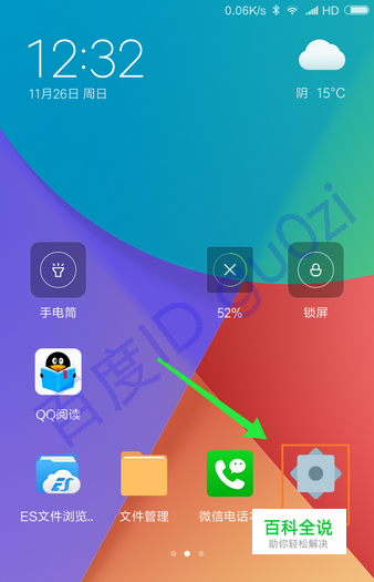这里以小米5x手机,MIUI V9系统为例,进入设置,