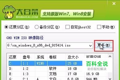 第二步 在进入大白菜装机版pe系统桌面后,会自动弹出大白菜PE装机工具窗口,此时点击“浏览(B)”进入下一步操作。