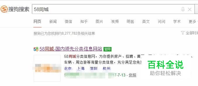 然后点击58同城官网,如下图所示。