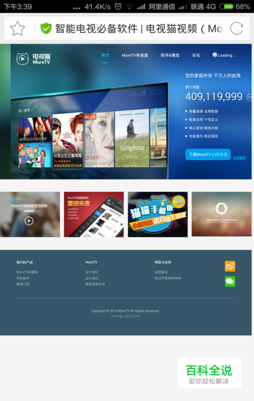 电脑下载需要安装的第三方软件安装包,并保存到手机上,以电视猫视频为例;