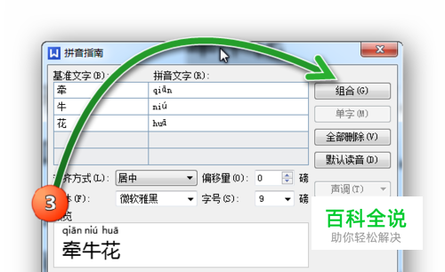 出现拼音指南对话窗口,在其中可以进行修改字号、单字、连词等形式,根据需要进行调整。