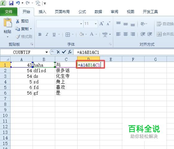 然后我们在该单元格中输入=A1&B1&C1,然后我们按回车键;