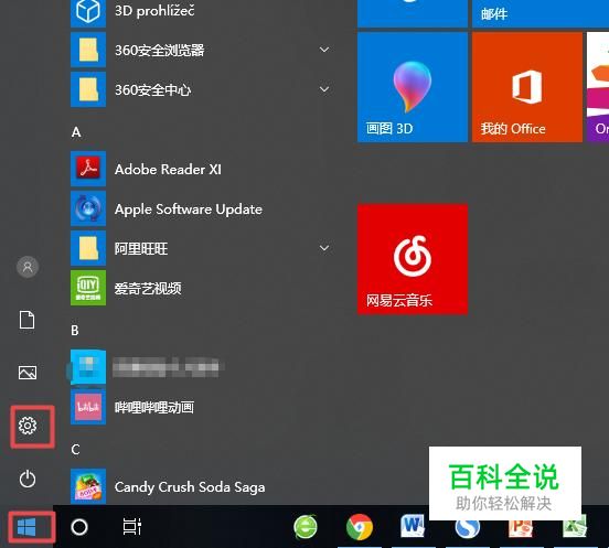 首先,我们打开我们的电脑,然后我们点击开始,之后我们点击弹出界面中的设置;