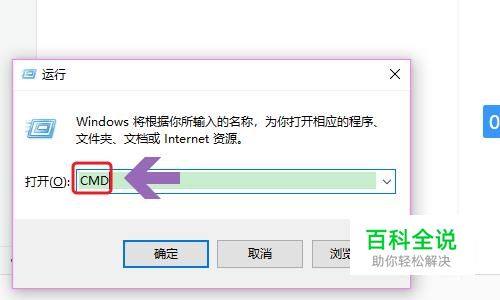 首先就是按下键盘上的组合键win+R,然后在切出的运行窗口里输入“CMD”命令,如下图...