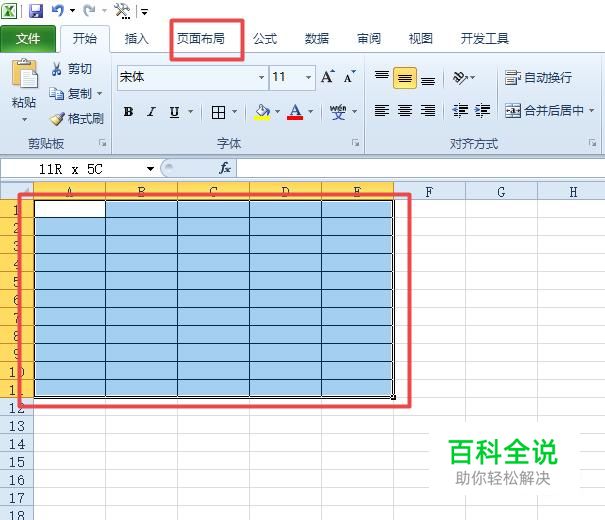 之后我们选中图示中的区域,然后我们点击页面布局;