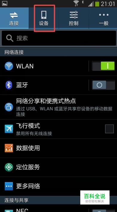弹出的界面,我们点击设备,如图所示;