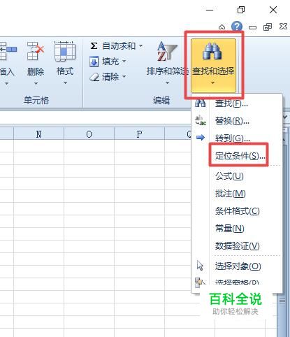 之后我们点击查找和选择的下拉箭头,弹出的界面,我们点击定位条件;