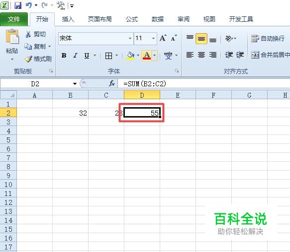 首先,我们打开我们电脑上面的excel,然后我们输入两个数字,之后我们在后方输入一个自动求和的公式,然后我们选中该单元格;