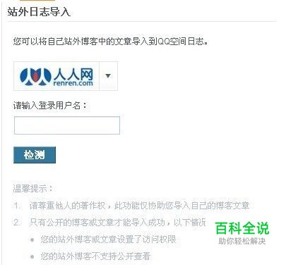 经常在人人网玩的你,是否想将你点点滴滴日志导入QQ空间,让空间好友也分享一下呢。下面简单介绍一下