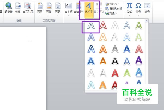 之后我们点击工具栏中的艺术字,弹出的界面,我们点击第一个艺术字;