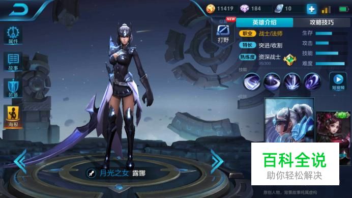 然后切换到露娜的勇者皮肤,哥特玫瑰。一袭哥特式长裙,摇曳的美,头发属于萌系。