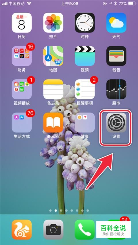 首先在我们的手机桌面上找到设置并点击它,如下图所示。