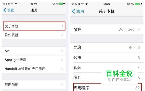 然后“关于本机”,你就可以一眼看到自己的iPhone一共安装了多少个应用程序的了。