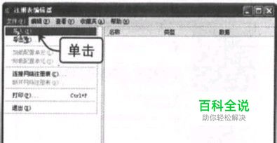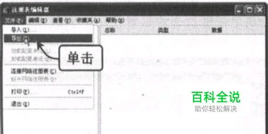单击“导出...”命令 打开注册表编辑器,单击“文件出..."命令,如下图所示。