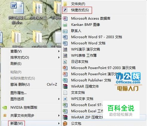 鼠标右键点击桌面空白处,选择新建--快捷方式。