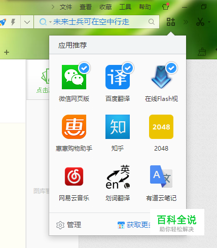 微信还可以用浏览器网页登录,打开浏览器,在浏览器的右上角有添加应用