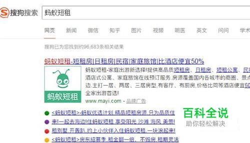 打开浏览器,输入“蚂蚁短租”,然后搜索。