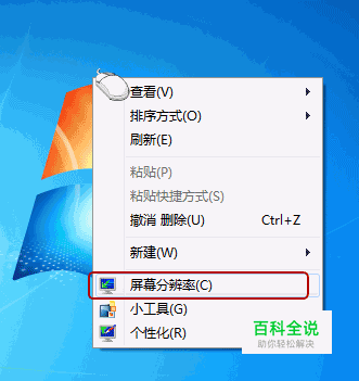 在桌面上空白处右键一下,看看出现了什么?点屏幕分辨率: