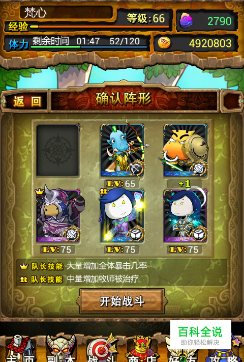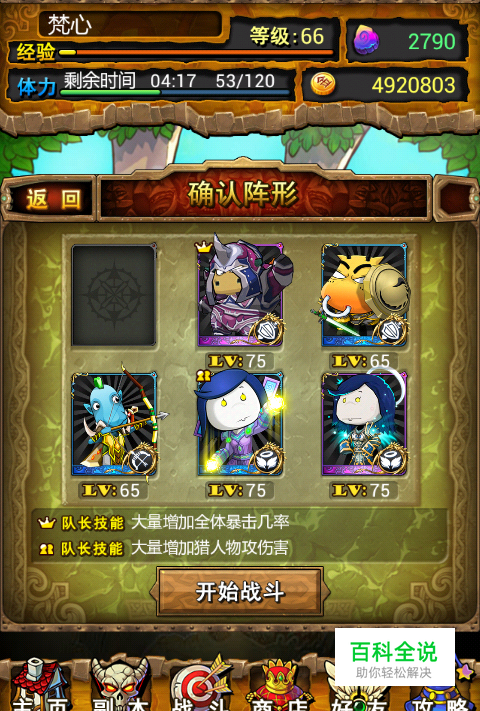 英雄南瓜自杀式打法千变万化,各有各的的刷法~ 但玩到后面,紫卡大把的友友们,有没有过一不小心就过了英雄南瓜呢,比较纠结吧O_o 总结再总结,下面就和友友们一起分享下梵心认为很安全也比较简单的配置与打法~^O^~ 队伍配置: 1.紫金任意坦克一个,防战、防骑、奶骑等,友友们这个总有一个吧。梵心用的是紫金桶牛~但强烈推荐防骑或者奶骑,因为防战太厉害会打死boss-_-|| 2.蓝金以上副坦一个,同上。梵心主要是没多余紫坦克,就蓝金凑合下吧。 3.紫金牧师或者死亡观察者一个,都可。团刷显得安全←_← 4.7000-8000血的劣人一只,保证被秒的妥妥的就行。 5.最后基友随便找个蓝max以上奶就行啦^_^ 小怪及通关阵型: 空 主坦克 副坦克 劣人 基友奶 紫金牧师 前两波基本没有意外伤亡,友友们只管看收成好了。 如果掉落满意,直接按“前进”装南瓜吧Y(^_^)Y BOSS自杀阵型: 空 劣人 副坦克 主坦克 基友奶 紫金牧师 也就劣人和主坦克换了个位置,操作非常简单。 如果对前面两波的南瓜掉落不满意,那么这个阵行会快速灭团,不用等到30回合结束的~ 一般,英雄南瓜,梵心只要收到三个就满足啦~ 贪太多,会累, 耗时、耗电、耗流量,外加损手机。 当然,精力旺盛、人品奇葩的友友可以无视~>_<~ 好了,以上仅供友友们参考∩__∩
