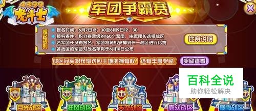 龙斗士军团争霸赛共分为5个战区,每个战区32个军团,只要成为战区的冠军就可以获得对应王城的拥有权,还有丰厚的奖励! 积分赛晋级的160个军团,有军团长选择战区,若军团长没有报名,军团将随机安排到任一战区进行比赛! 【纳豆以为是今天报名的,结果……所以,4399纳豆军的军团成员们,咱们军团预计会在月光战区出战哦~】