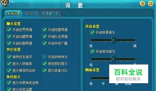 3.点击“快捷键列表”后,进入,即可查看游戏所有快捷键的按钮,如下图: