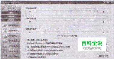 2、在“开始菜单速度”、“菜单运行速度”和“桌面图标缓存”选项区中拖动滑块调整显示速度及缓存
