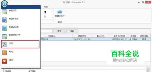 打开transmate翻译软件并点击主菜单栏的“选项”如图