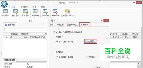 进入选项栏目,并点击“机器翻译”,选中“API设置”,出现API设置界面,如图