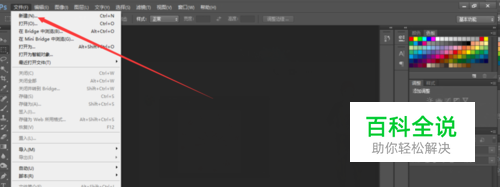 打开ps软件后,点击菜单栏目里面的【文件】,新建一个文件图片,先去设置一下这个文件的有关参数,如图所示~