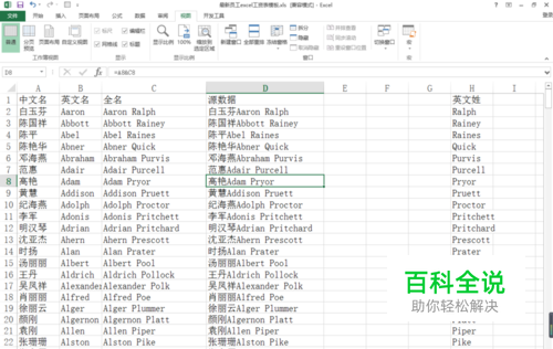 因为空格将英文姓名分离,所以被处理成两行,我们需要对其进行修改,使用连字符或者任意字符替换空格,来链接英文姓名,并重复步骤3。