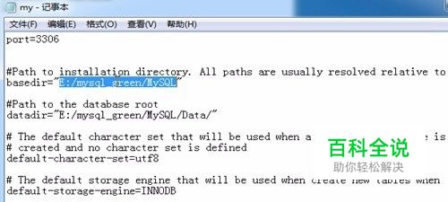 点击“me”文件,使用右键用记事本打开查看,找到下图的位置,看你的数据库安装目录在哪里。
