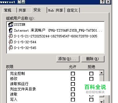 在权限列表中选择【读取和运行】、【列出文件夹目录】【读取】权限后,单击【确定】按钮,即可完成设置。