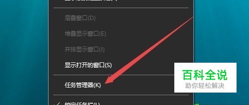 在Windows10系统桌面,右键点击屏幕底部的任务栏空白位置,在弹出菜单中选择任务管理器菜单项