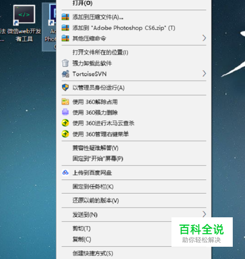 第一步在win10系统上鼠标右键桌面的Photoshop快捷图标,选择属性,如下图所示: