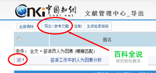 打开知网,搜索自己需要的文献。在搜索到的文献前面打勾,然后点击“导出/参考文献”。如图所示。