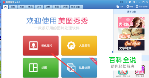 打开美图秀秀,找到美化图片,点击打开